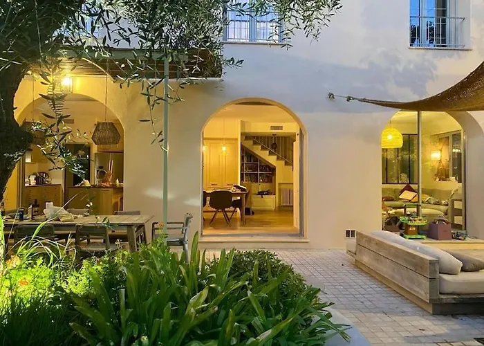 Nice Living Cap D'Antibes Villa med 4 sovrum, som ligger mindre än 5 minuters gångavstånd från Plage de la Salis, erbjuder avsvalkningspool. Villan med 4 badrum erbjuder möjligheter till vattensportaktiviteter, vindsurfning och snorkling i området, ungefär 10 minuters bilfärd från Sepaco sjukhus.